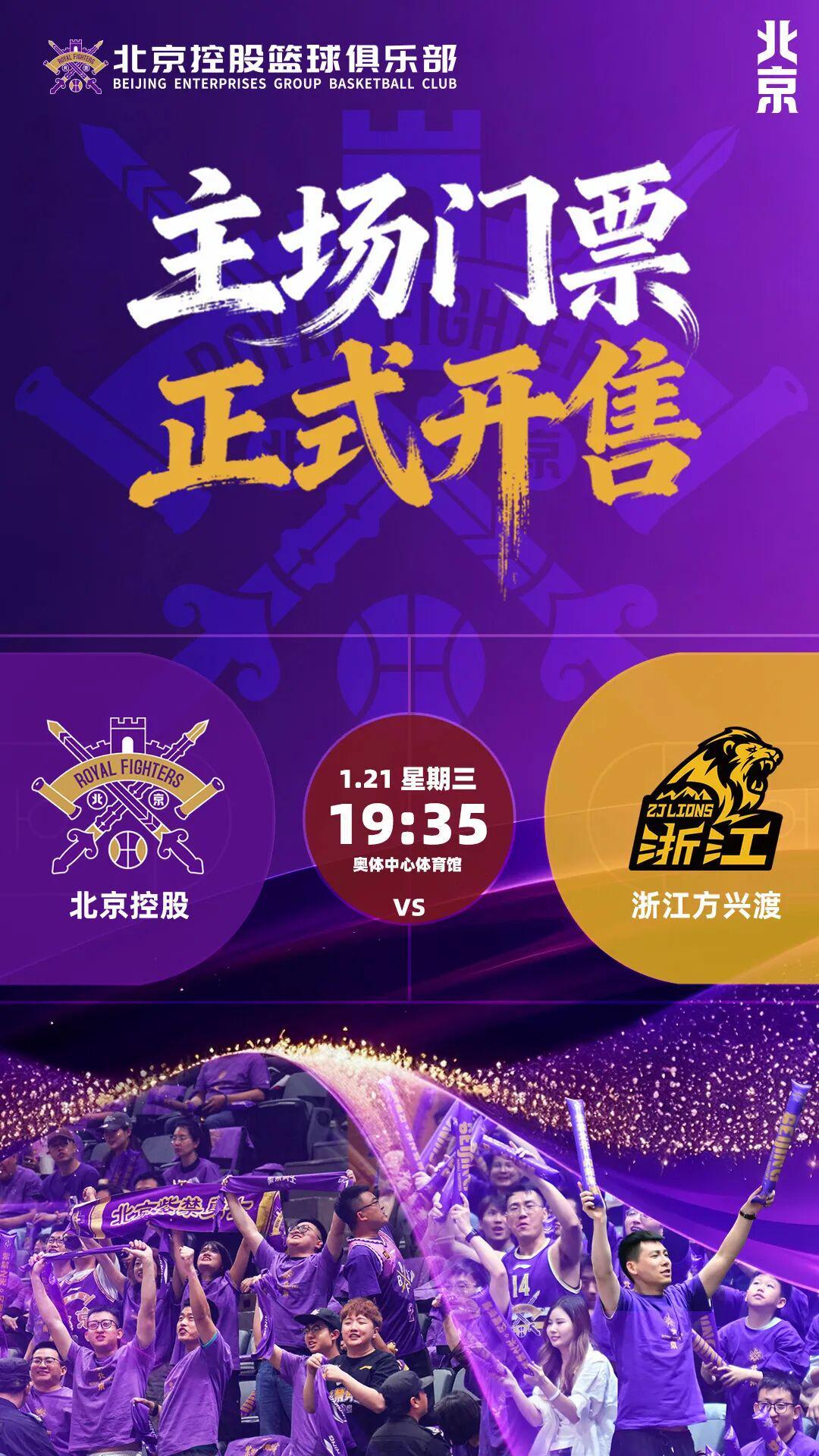 开云-【票务公告】北控男篮对阵广厦男篮主场门票将于1月14中午12:18开售