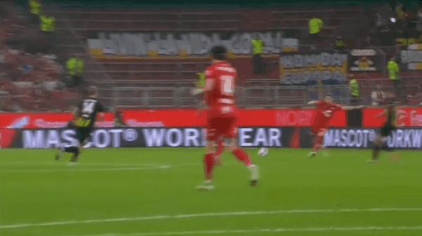 38’莱奥尼头球顶向禁区中央,德罗维不慎自摆乌龙,赫根1-0领先布兰