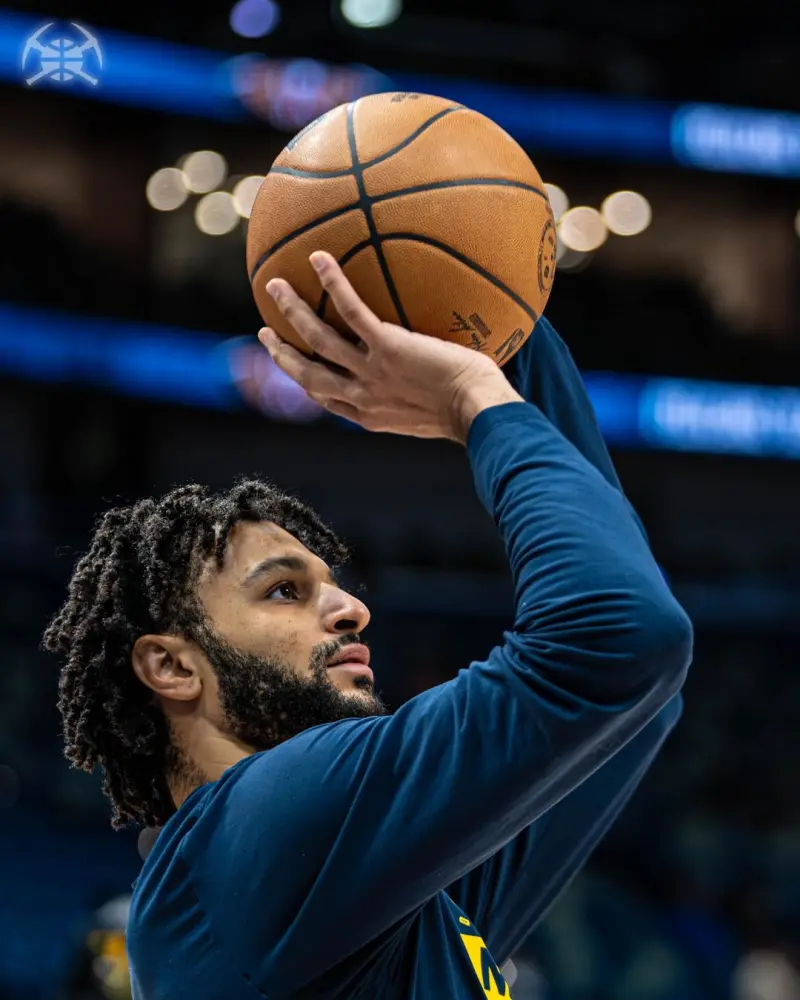 赛前,掘金社媒晒出球员今日赛前热身的瞬间,贾马尔-默里、阿龙-戈登出镜。