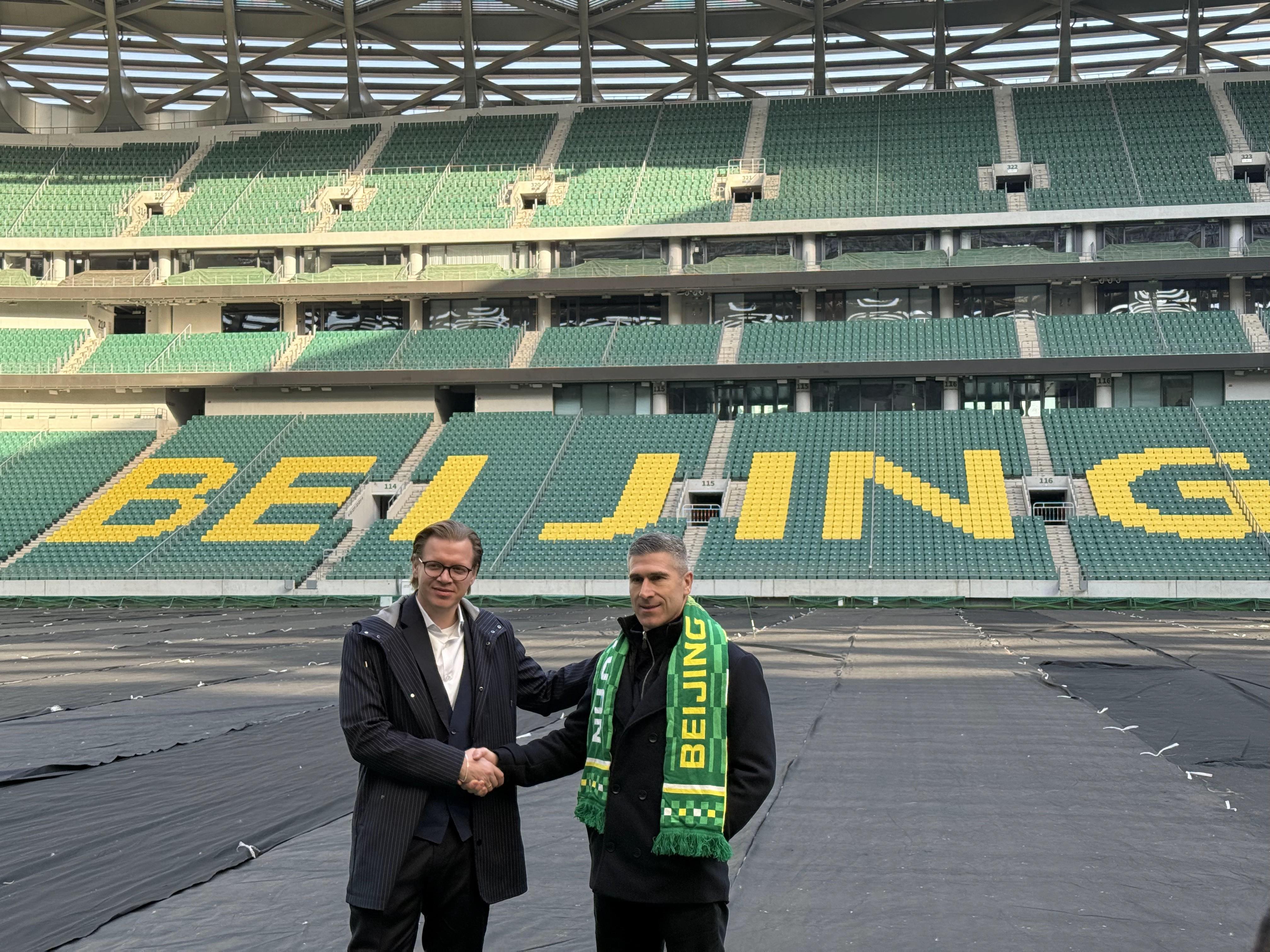 北京时间1月12日,北京国安新任体育总经理马永明及主教练蒙哥马利的就职新闻发布会在北京工人体育场进行。